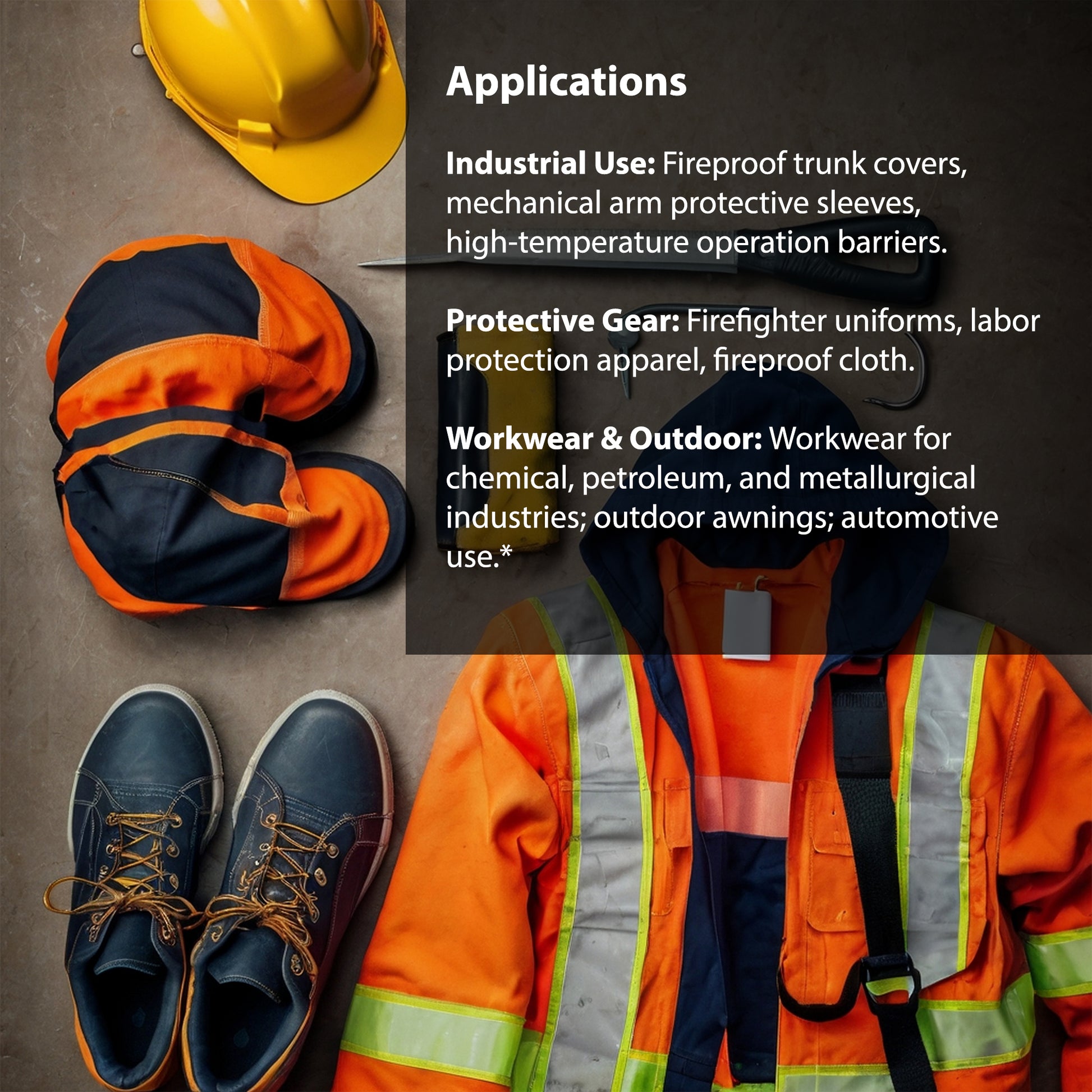 - Temperature Resistant, Cut Resistant, Flame Resistant, Heat-Insulation, Non-Conducting, Anti Pill, Sustainable, Abrasion-Resistant, Tear-Resistant, Anti-Pull.*